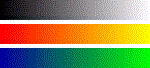 If both of the above images look about the same, then you are running a 256 color display and Netscape is dithering the image on the left to it's 216 colors. If the image on the left looks smooth but the image on the right looks all speckled, then you are running a high or true color display. The image on the left is a few simple gradients, saved in a low compression jpg format. In true color mode the gradient is very smooth and in high color mode it is still quite smooth (although the number of distinct colors falls to 313). The image on the right is a screen capture of the left image through 256 color mode.